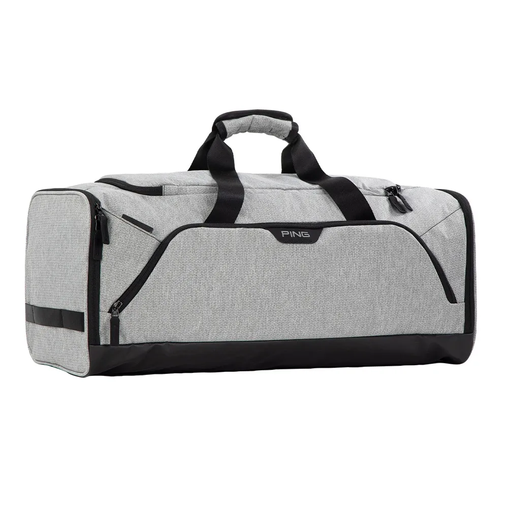 Perfectly sized for versatility, this golf duffel bag balances functionality and style. The spacious main compartment and three external zippered pockets make it easy to organise your essentials, while the durable PU-coated bottom ensures stability and long-lasting use. Crafted in a sleek textured heather grey, it features an interchangeable strap design for comfortable carrying by hand or over the shoulder.