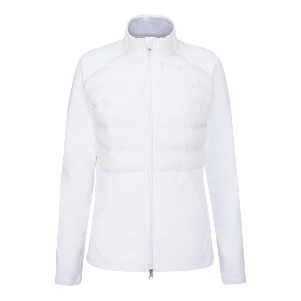 Refined and performance-ready, the Clare Ladies Zoned Fleece Jacket in White offers a clean, modern aesthetic with advanced thermal engineering. Featuring Clo® Pluma insulation zoned at the front and back body, this fleece delivers targeted warmth where you need it most. Water-resistant brushed-back fleece panels ensure a soft feel and excellent mobility, while functional details like the two-way zip and fleece-lined pockets enhance comfort from course to clubhouse.