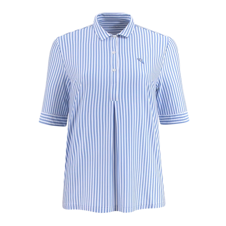 Women’s polo shirt in all-season striped Dry-Matic stretch jersey Oxford fabric. The model boasts unparalleled breathability and ensures constant freshness, thanks to both the structure of the polyamide yarn and the special Dry-Matic treatment that bestows quick-drying properties. Antibacterial treatment. Oversized shirt style with 3/4 turn-up sleeves and full flaring on the sides thanks to the darts on the front and back. Small custom buttons fasten on the collar. The update of a timeless classic.