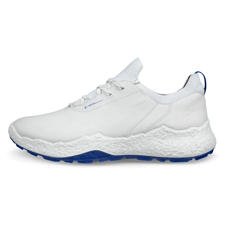 Inspired by the wild and rugged nature of the Scottish Highlands, and powered by exclusive Danish technologies, the ECCO M GOLF BIOM H5 is a new performance golf shoe built for the elements. If many consider Scotland to be the home of golf, Denmark is driving innovations in the sport: state-of-the-art ECCO-TEX waterproof membrane will keep your foot dry and comfortable in wet conditions. For a modern, sporty aesthetic as well as all-day comfort, this next generation BIOM golf shoe is crafted from ECCO Performance Leather with a one-piece engineered knit sock. Along with a snug fit, the BIOM® NATURAL MOTION® technology creates stability and forward momentum for power during your swing. Wherever your round, and your day, takes you, the new and innovative outsole delivers stability and traction.
